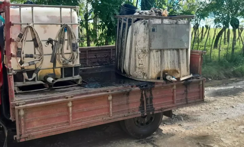Las personas fueron sorprendidas infraganti mientras realizaban el acto, por el mismo Director municipal de Medio Ambiente Euris Contreras, el cual utilizaron un camión marca Daihatzu, color Rojo sin placa, el material de color negro mal oliente, la cual estaban en uno de dos tinacos, lo que al parecer estos realizaban un trabajo de limpieza de sépticos.