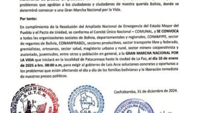 Bolivia: Organizaciones Sociales Anuncian Posible Marcha desde Caracollo hacia La Paz el 10 de Enero