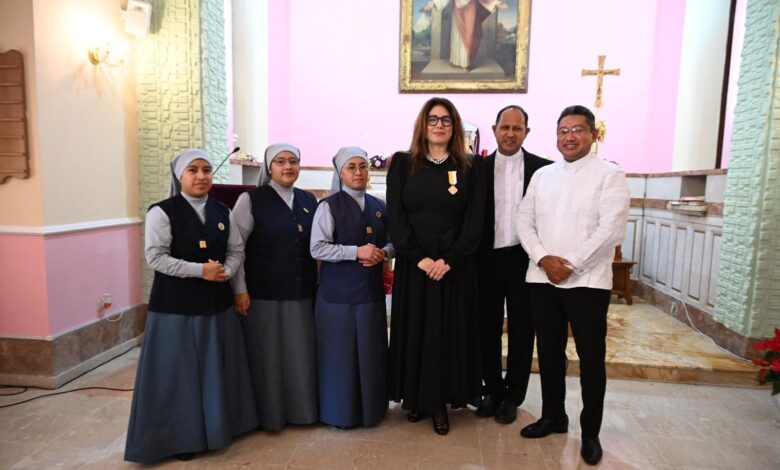 “Doña Josefina Domínguez ha sido una destacada diplomática dominicana ante la Santa Sede por muchos años, realizando importantes aportes a la Iglesia Católica. Actualmente, es delegada magistral de la Orden Ecuestre del Santo Sepulcro de Jerusalén y Dama del Santo Padre”, expresó monseñor Mendes.
