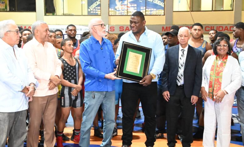Recientemente, el atleta fue distinguido con una placa por la Federación Dominicana de Lucha (FEDOLA), en un acto encabezado por el presidente de la institución, el licenciado Antonio Acosta.