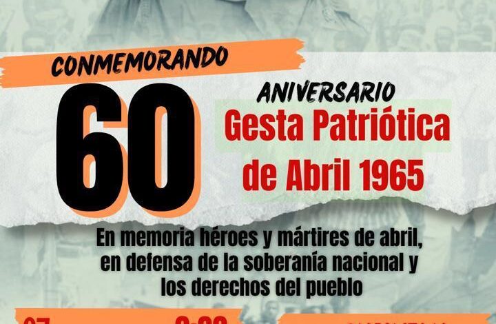 Santo Domingo.Este domingo 27 de abril, diversas organizaciones sociales, encabezadas por la Coordinadora Popular Nacional y la Coalición Enriquillo, realizarán una Gran Marcha Nacional en conmemoración del 60 aniversario de la Gesta Patriótica de Abril de 1965 en la República Dominicana.