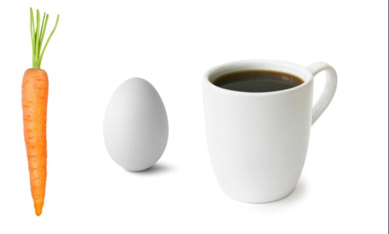 La zanahoria, el huevo y el café. ¿Tú qué eres?
