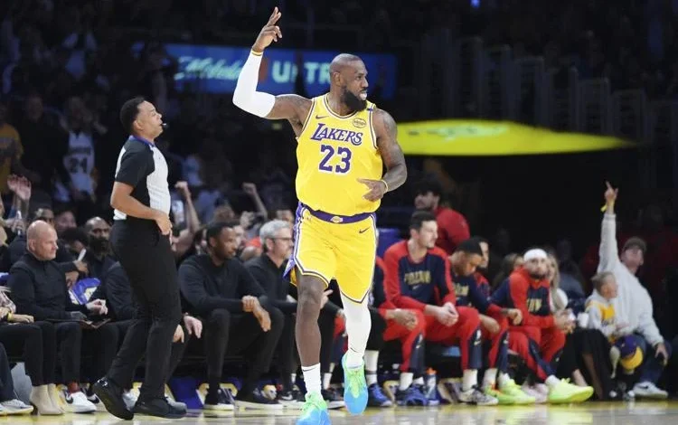 El astro totalizó 34 puntos, y los Lakers de Los Ángeles vencieron el martes 136-115 a los Pelicans de Nueva Orleáns.