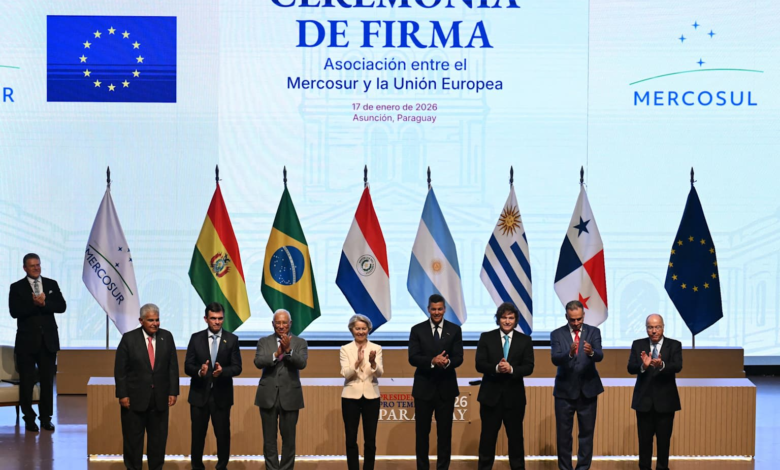 Esta aceleración responde a las políticas arancelarias de Estados Unidos. Von der Leyen afirmó durante la ceremonia de firma que el acuerdo “envía un mensaje muy contundente al mundo. Optamos por el comercio justo en lugar de los aranceles”.