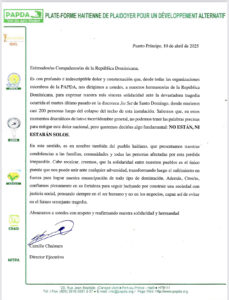 PAPDA en nombre del pueblo haitiano, reafirmó su compromiso con la hermandad entre ambas naciones, abogando por un futuro de cooperación y respeto mutuo.