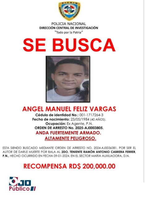 En tanto, Feliz Vargas, de 40 años, es señalado como uno de los responsables del asesinato del segundo teniente Ramón Antonio Cabrera Ferrer, ocurrido el 9 de enero de 2024 en el sector María Auxiliadora, del Distrito Nacional.
