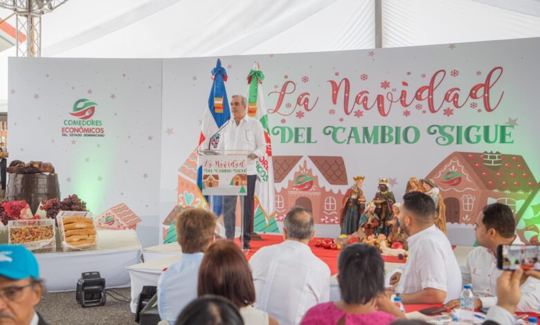 Posteriormente, el jefe de Estado se trasladó al municipio de Santo Domingo Norte, donde encabezó el acto de lanzamiento del programa “La Navidad del Cambio Sigue”, con el que se ofrecerán unas 10 millones de raciones de almuerzo y cenas navideñas a la población, distribuidas a través de los 135 comedores económicos ubicados en todo el territorio nacional.