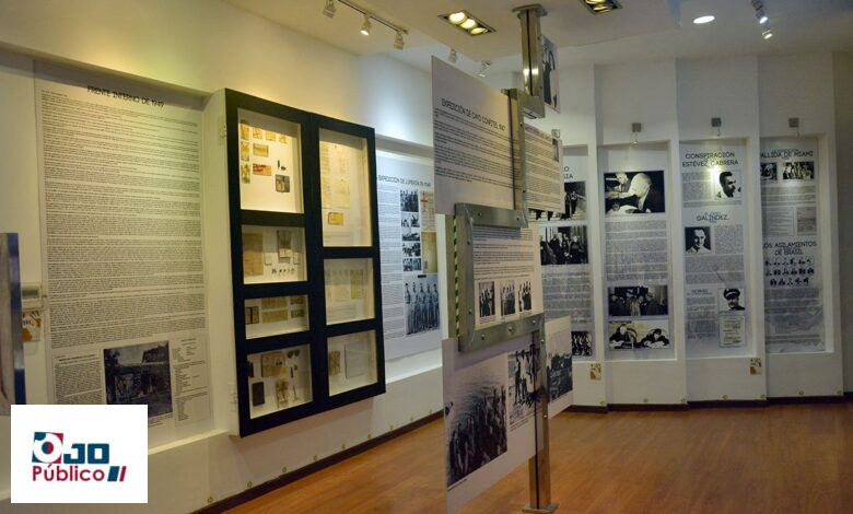 Colgados a la pared y en forma de cajas hechas en playwood se encuentran escritas historias de partidos políticos y guerrilleros entre 1916 y 1947.